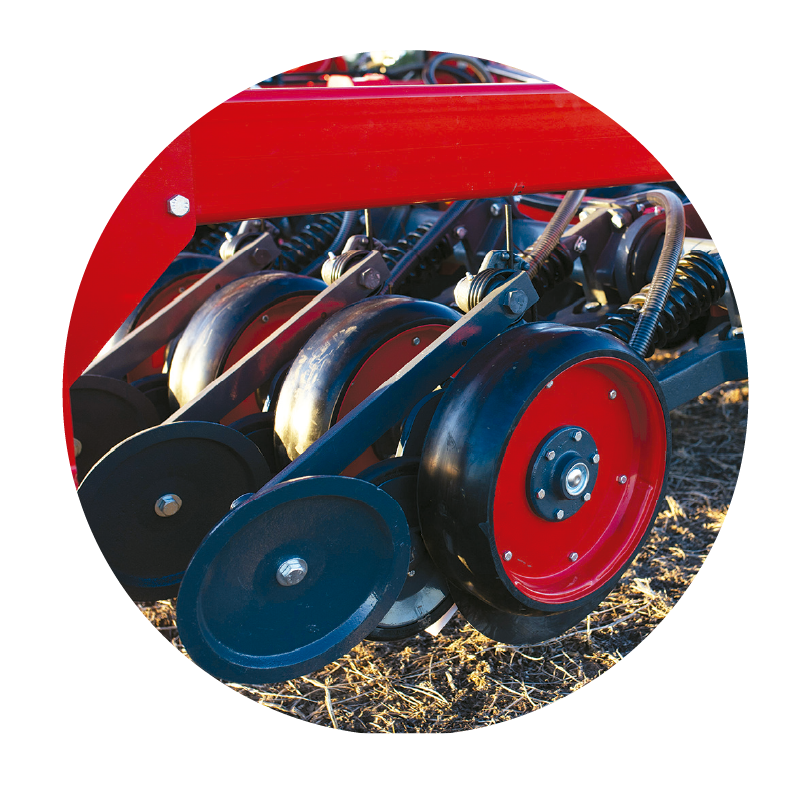 Usted puede seleccionar la presión deseada en la válvula de control dependiendo de las condiciones del terreno y el tipo de siembra, pudiendo realizar siembra convencional, mínimo laboreo o siembra directa hasta en las condiciones más extremas con más de 250 kg. de carga por abresurco.