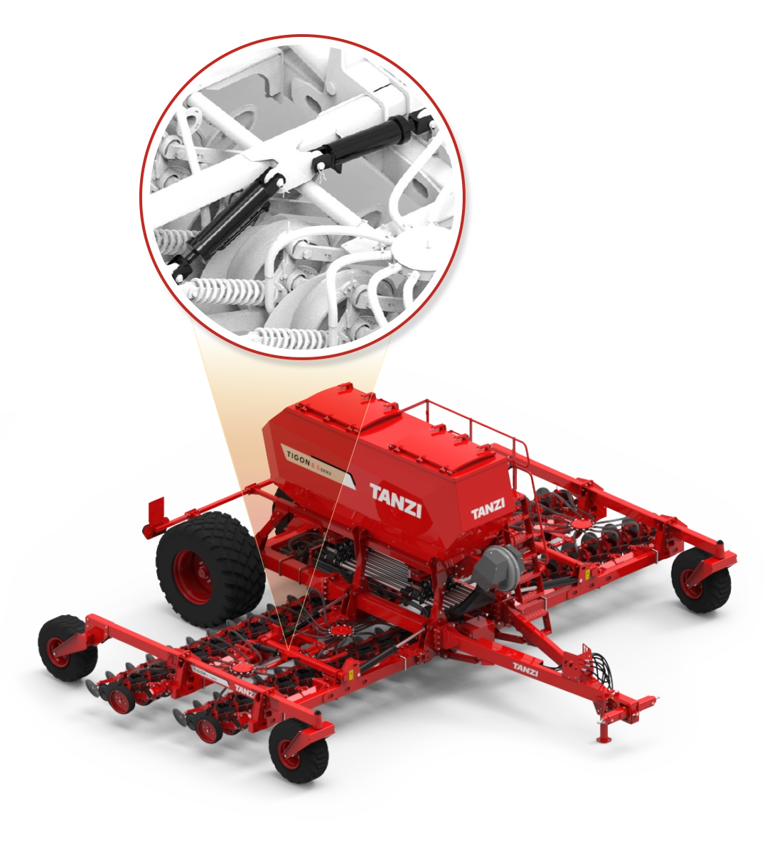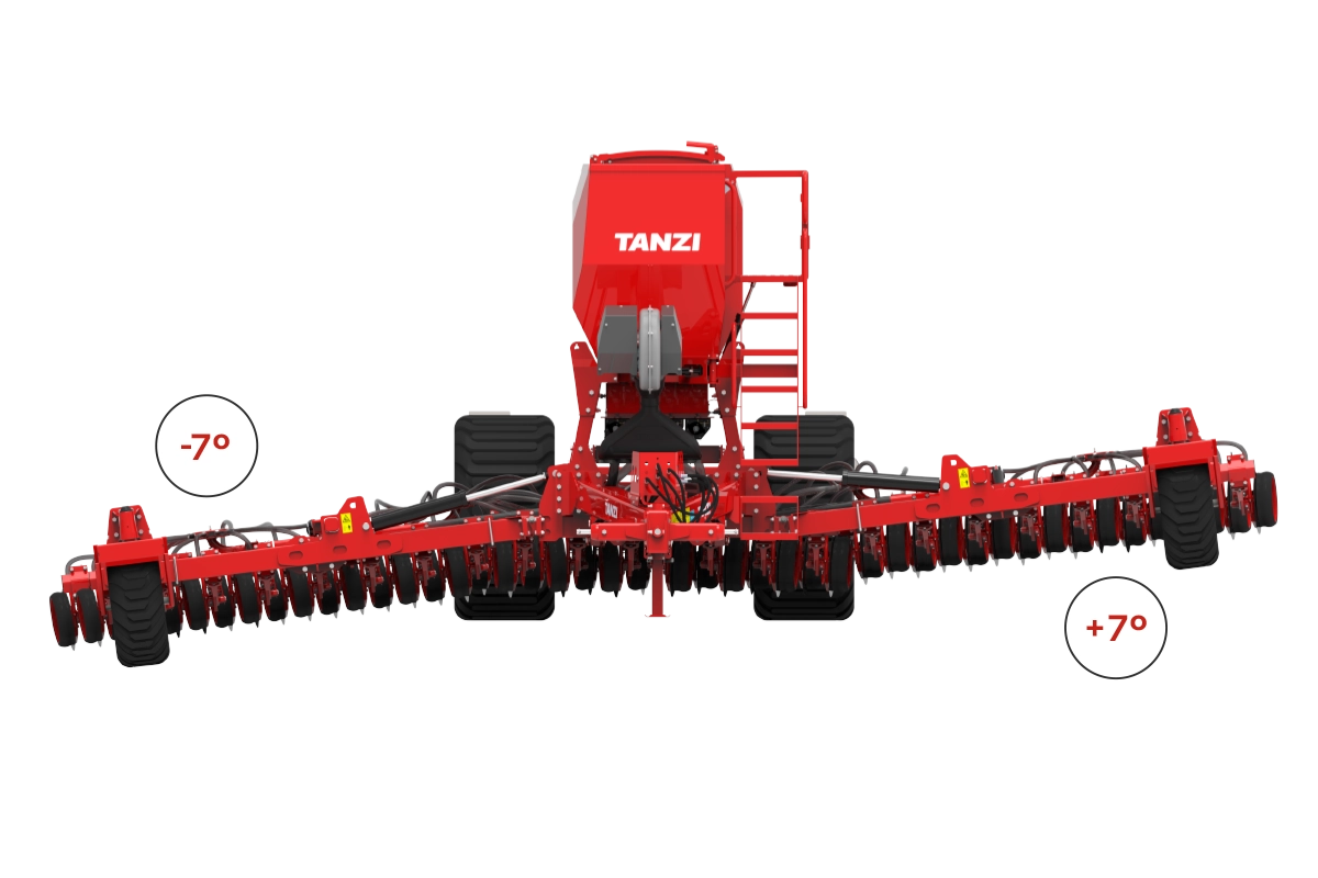 Tigon está equipada con un sistema de presión hidráulica activa que mantiene constante la uniformidad de siembra independientemente de las condiciones del terreno.