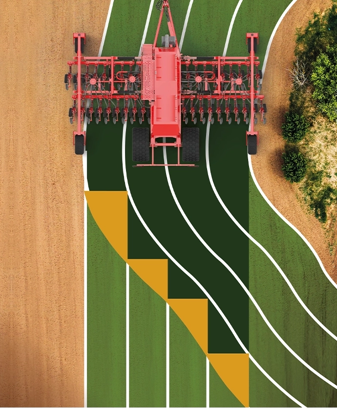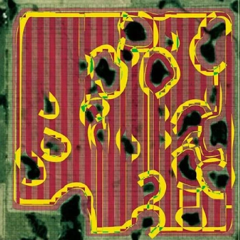 La cantidad de solapamiento varía en función de la irregularidad del campo y del ancho de trabajo de la sembradora. Cuanto más irregular es el campo y más ancha es la sembradora, mayor es el solapamiento.