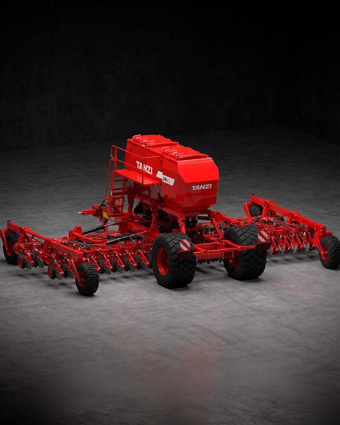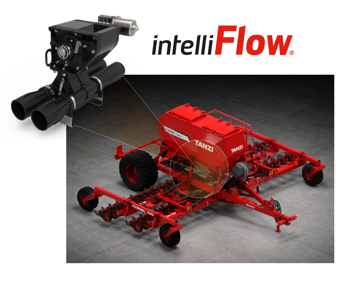 Equipada con la nueva generación de dosificadores independientes Tanzi IntelliFlow, permitiendo operar la sembradora en 4 secciones independientes para realizar corte seccional automático para evitar solapes, ahorrando de miles de euros por campaña.